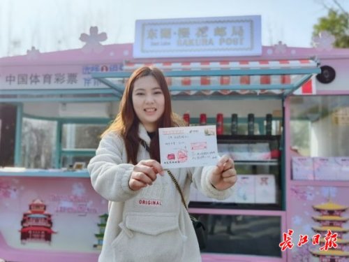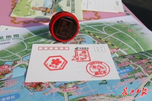 另外,樱花邮局专门打造了东湖风景纪念戳、赏樱地标戳等18款专属纪念戳。赏樱期间,游客可在樱花邮局领取一张手绘地图,集齐5处指定地标的纪念戳,即可领取一份专属樱花礼品。