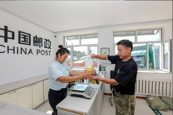 采访组正好碰到了五林洞镇蜂农王永进来寄蜂蜜。他说,村里的蜂蜜、木耳、各种山野菜等,很受大家欢迎。邮政不仅帮助解决创业资金问题,还通过站点把他们的产品销售到全国各地,带大家走上了致富之路。