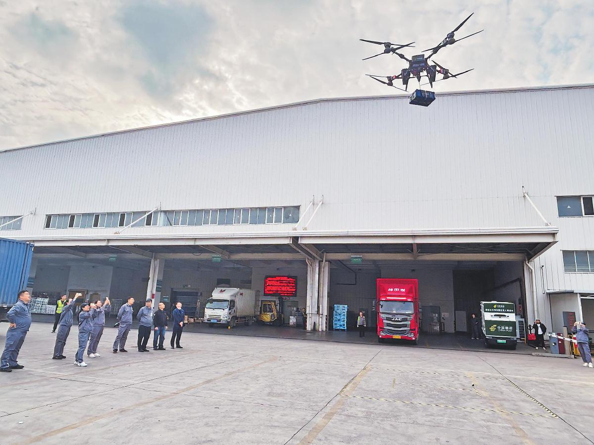 11月6日,山东中邮物流与海信日立公司在青岛黄岛工业园联合开展无人机运输项目试飞。以往依赖车辆绕行运输的跨厂区物料,现在通过无人机直线运输仅需两三分钟即可精准送达,有效打通厂区内物流瓶颈。未来,山东中邮物流将持续拓展无人机、无人车、智能立库等智慧物流应用,助力客户降本增效,赋能制造业高质量发展。